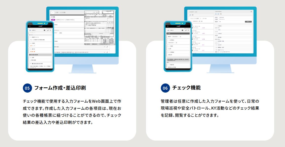 また、現場でのチェック作業はスマートフォンから簡単に操作でき、入力した内容はその場ですぐに共有できます。