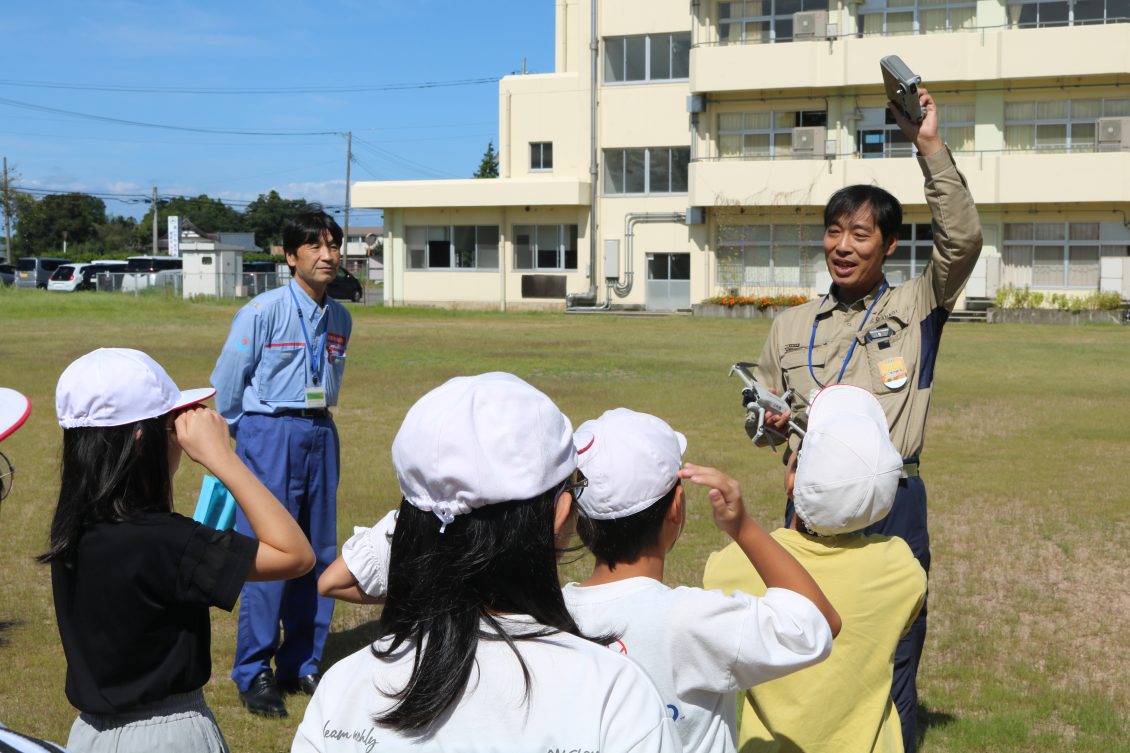 その後、グラウンドではドローン操作を体験し、いよいよ現場へ移動。