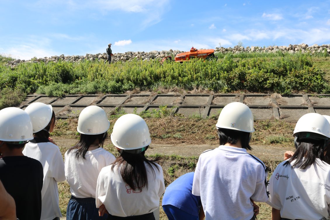 現場ではICT施工の見学に加え、除草作業や重機作業など、