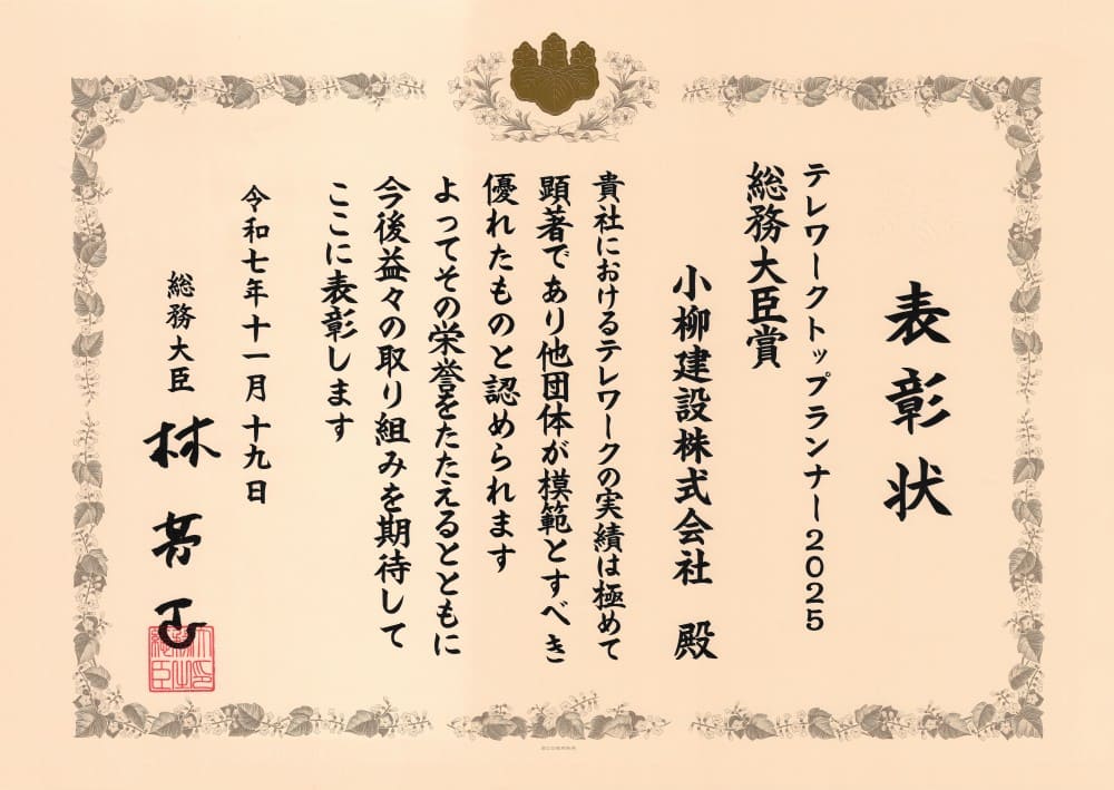 「テレワークトッププランナー2025」総務省がテレワークの導入・活用において優れた取組を行っている企業・団体を選定し、その中から特に優れた取組を行う企業・団体を「テレワークトップランナー2025 総務大臣賞」として表彰するものです。