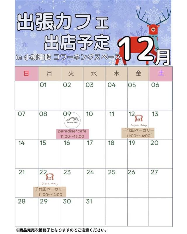 12月 22日(月) 11:00~14:00 千代田ベーカリー様